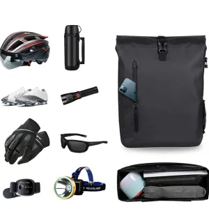 4. waterproof cover with roll-top closure, easy to open zippered main compartment that’s always dry.